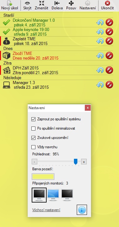 Există, de asemenea, o opțiune de utilizator pentru a porni automat programul după pornirea sistemului de operare, opțiunea de a menține întotdeauna fereastra deasupra, setări de transparență, schimbarea culorii de fundal sau selectarea monitorului principal în timpul multi-ecranului.