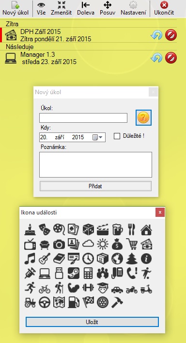 Un panou îngust cu opțiunea de a seta o poziție fixă care va fi reținută până la următoarea lansare.