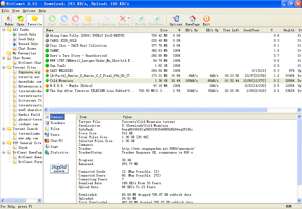 Cel mai popular client Torrent pentru descărcarea fișierelor (muzică, filme, jocuri, ...).