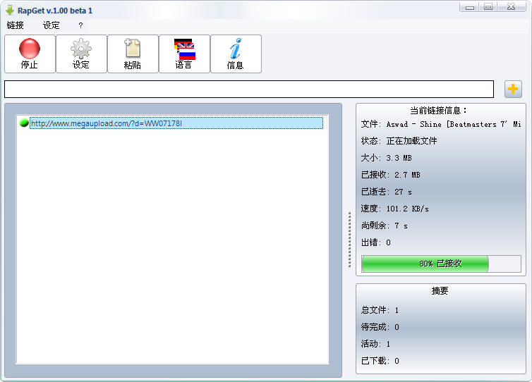 Principalul avantaj al programului este descărcarea cu adevărat ușoară - doar puneți fișierele descărcabile în listă și nu mai trebuie să vă faceți griji pentru nimic. RapGet vă așteaptă să activați DownloadTicket, în cazul, de exemplu, RapidShare.de, chiar recunoaște textul din imagine. Este de la sine înțeles că sunt acceptate și conturile plătite.