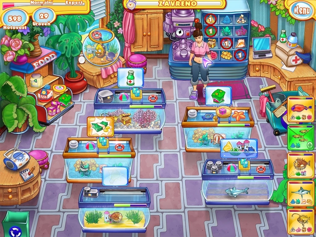 Obțineți cât mai mulți bani și puncte posibil prin creșterea tot ceea ce trăiește în regatul apei. Puteți pune mâna nu numai pe pești mici colorați, ci și pe meduze, rechini sau chiar pe o dorada! Iar restul depinde de tine - cu cât le decorezi mai bine acvariul, cu atât îi vei hrăni mai bine și ai grijă de ei, cu atât mai bine te vei descurca. Veți putea cumpăra echipamente mai bune, magazine mai bune și veți putea progresa către obiectivul visat.