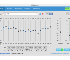 Funcția Pan/Expand vă permite să reglați efectele stereo, funcția Multi - Delays vă permite să creați diverse efecte (ecouri, întârzieri, ...). Cu programul gratuit PC Equalizer - GUI, puteți controla canalele din dreapta și din stânga, puteți extinde sau reduce efectele sau puteți utiliza presetări încorporate pentru anumite programe (Winamp, Windows Media Player,...).
