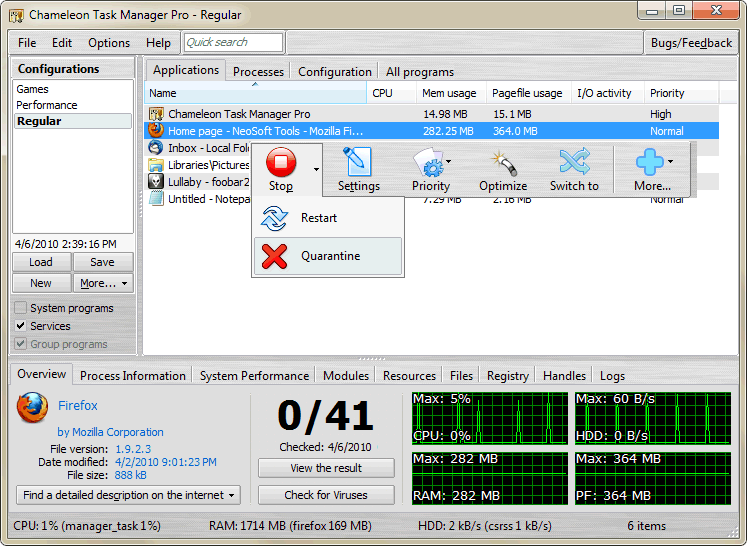 Parametrii programului Chameleon Task Manager 4.0.0.701